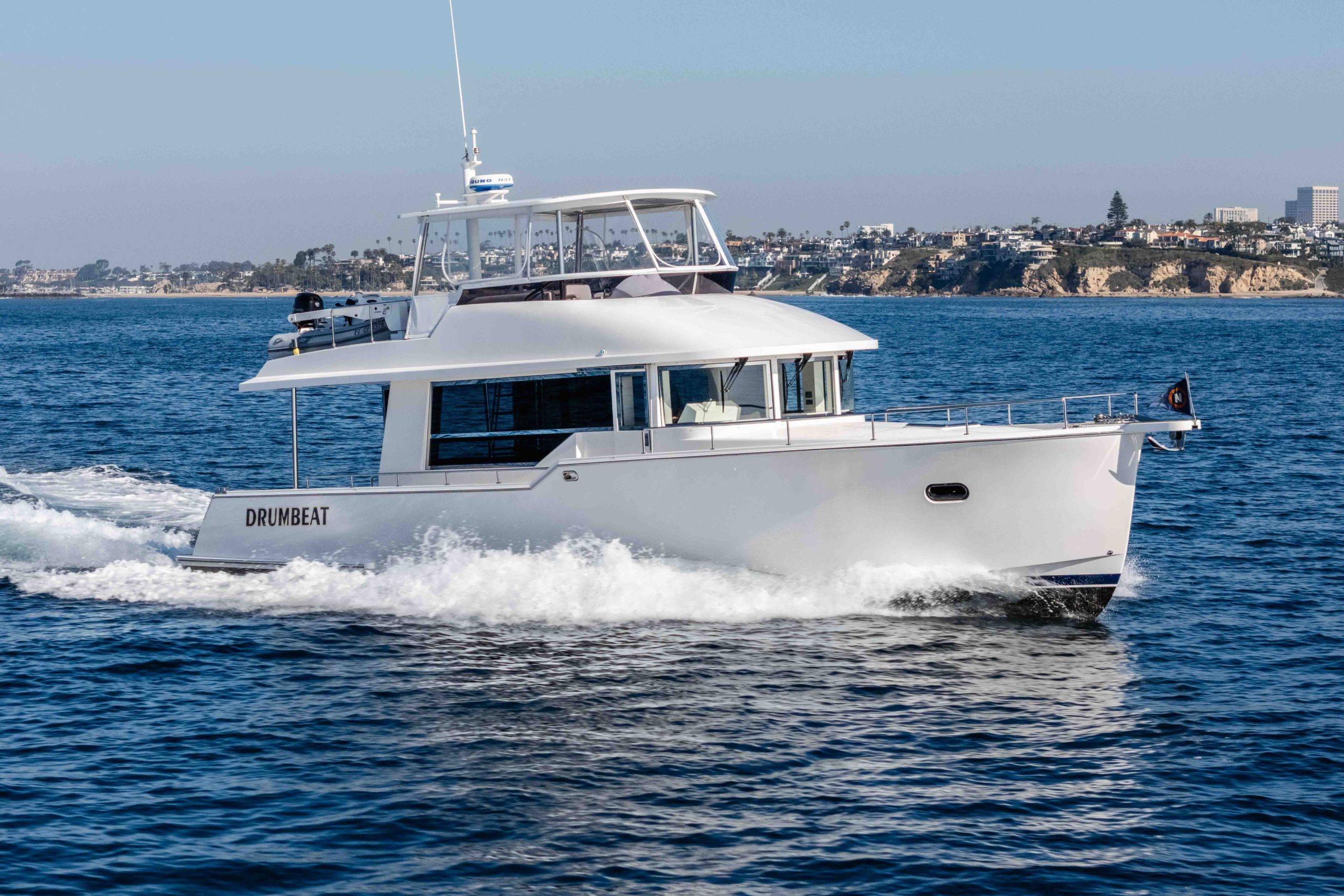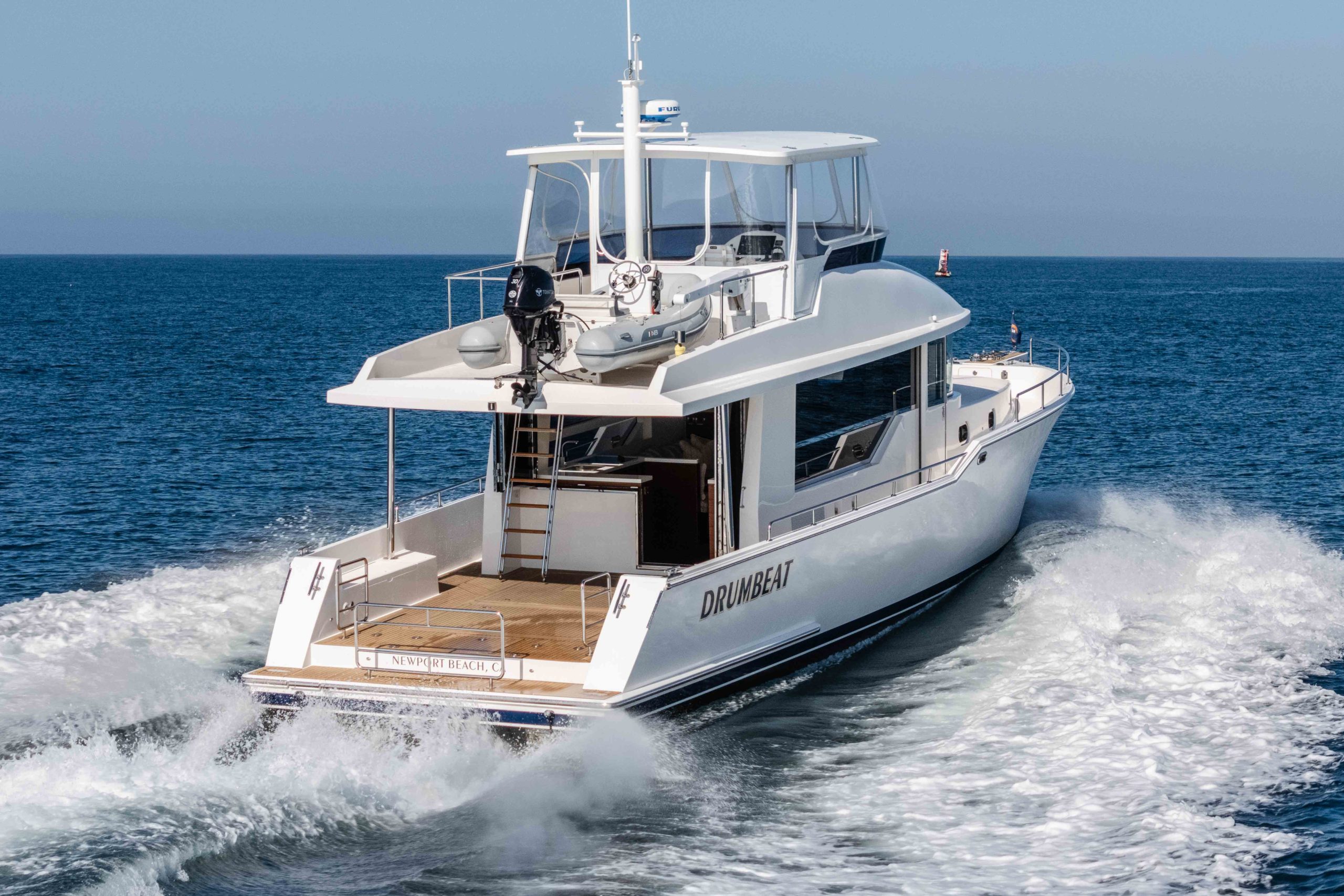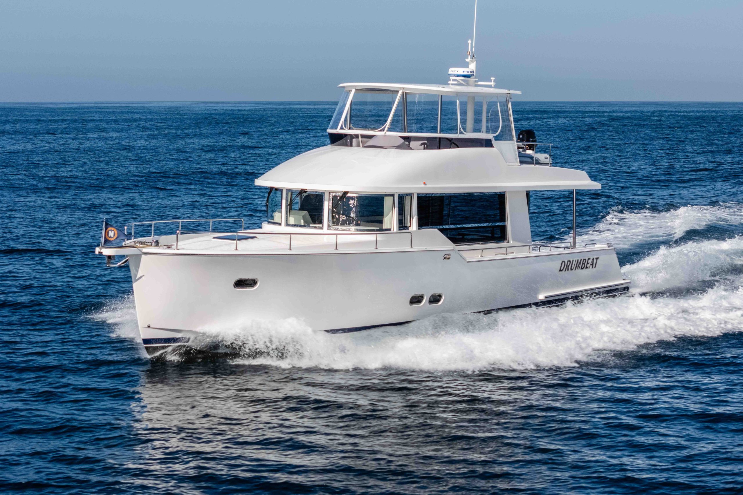 The Outback 50 delivers a rare blend of efficiency, simplicity, and massive outdoor living space—all on Michael Peters’ proven hull design. Powered by economical Volvo D4 270s, she offers exceptional real‑world range at every speed, plus the reliability of straight‑shaft drives and the confidence of bow and stern thrusters for easy handling.