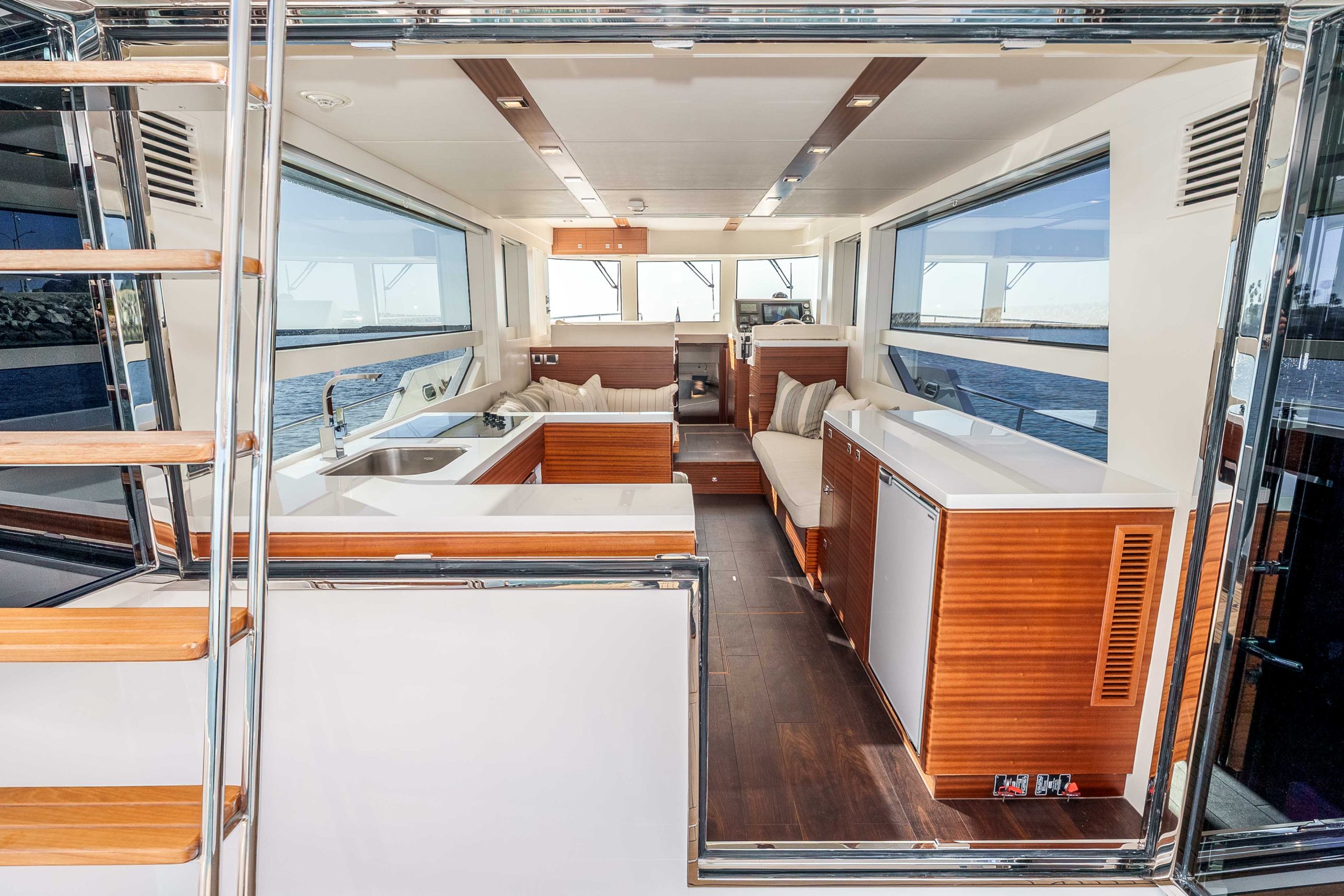 - SS retractable ladder to flybridge with teak stair treads