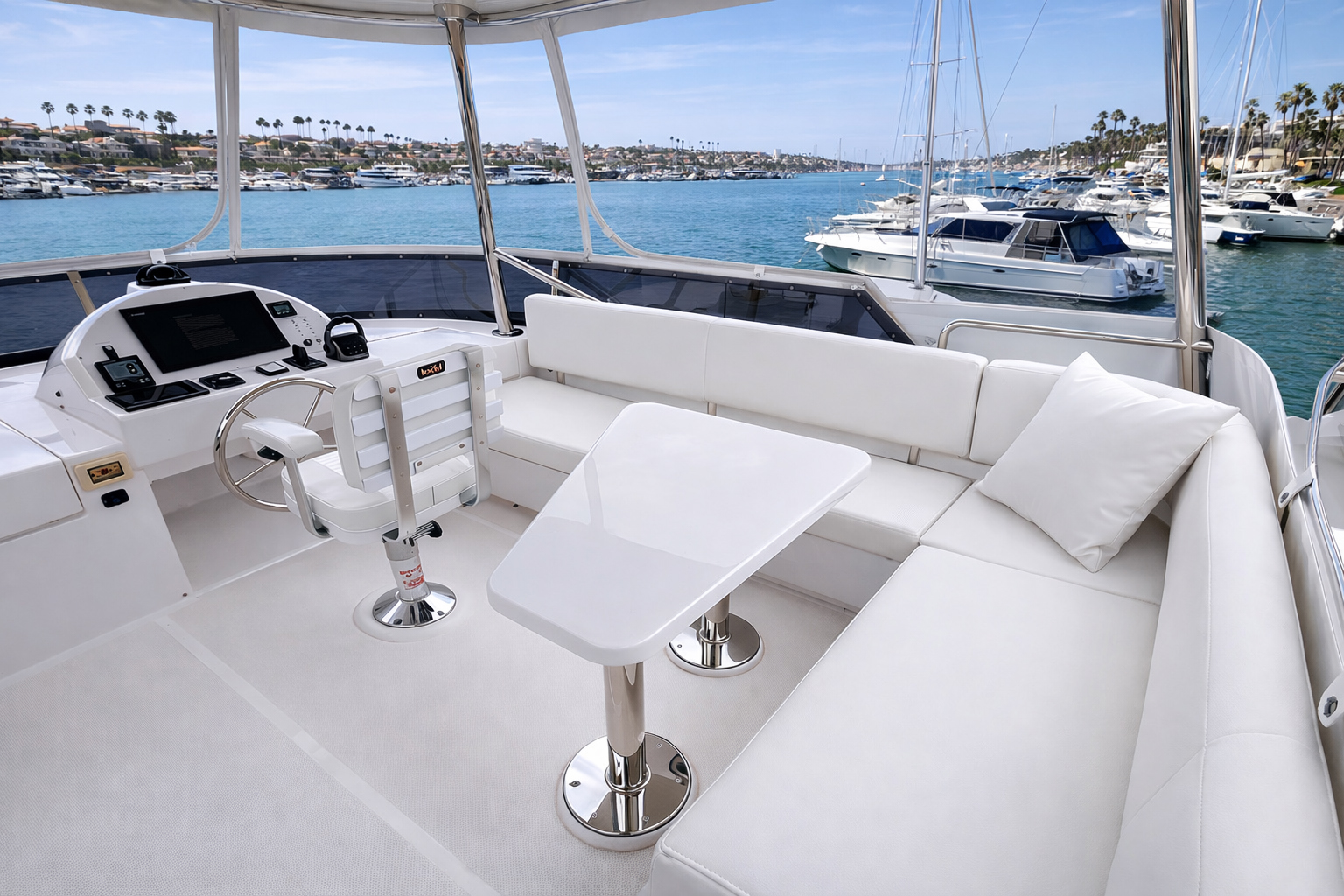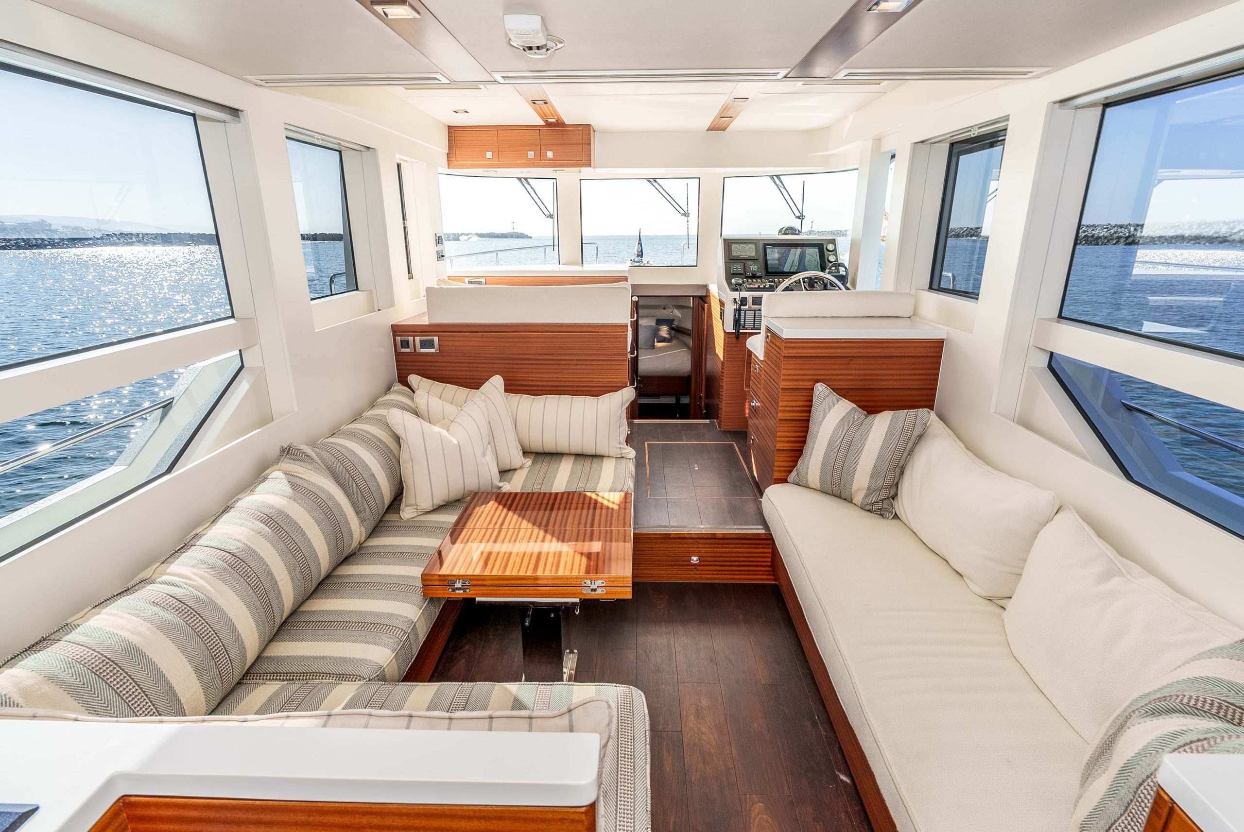 - Deep chart table forward of L-settee seat port
