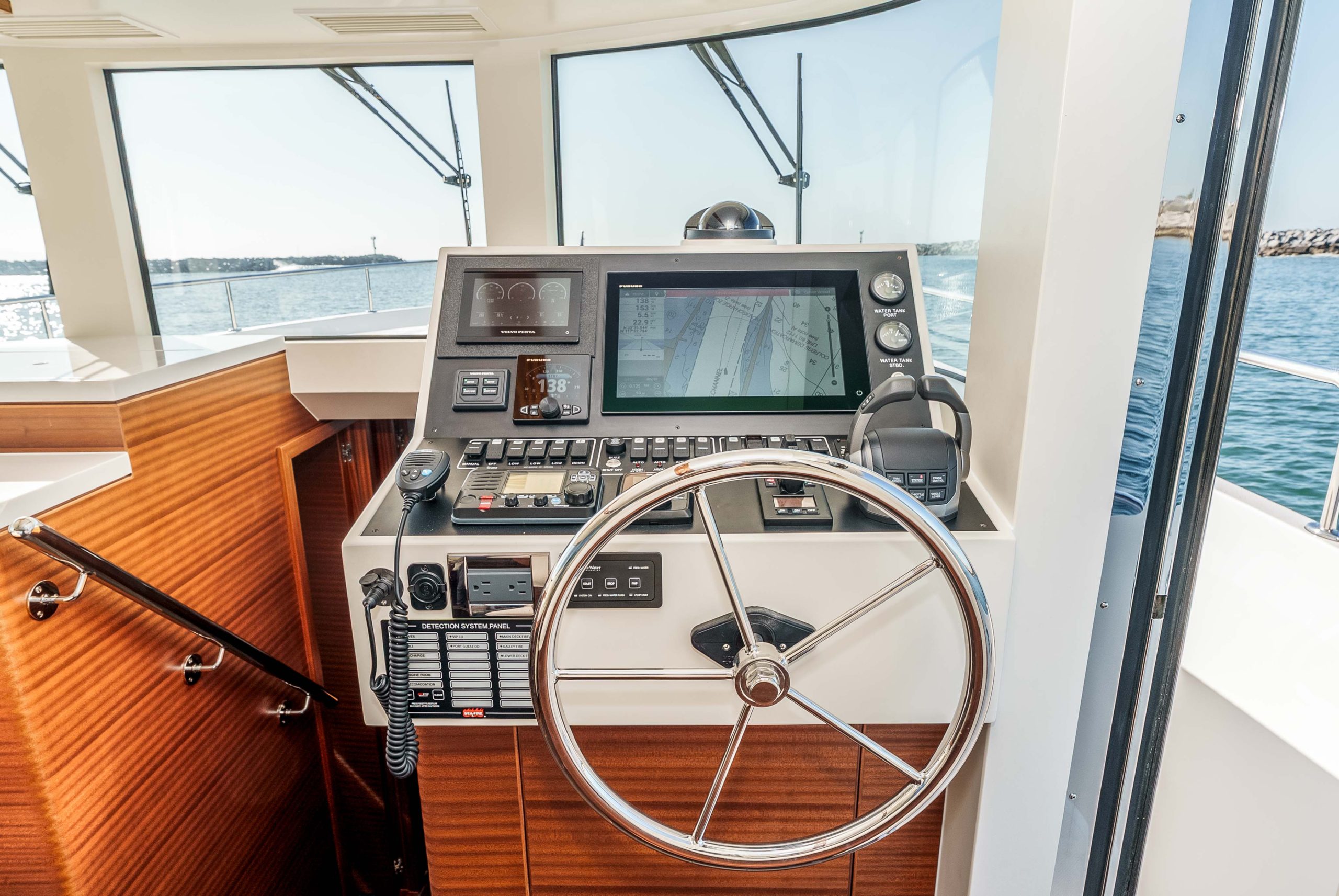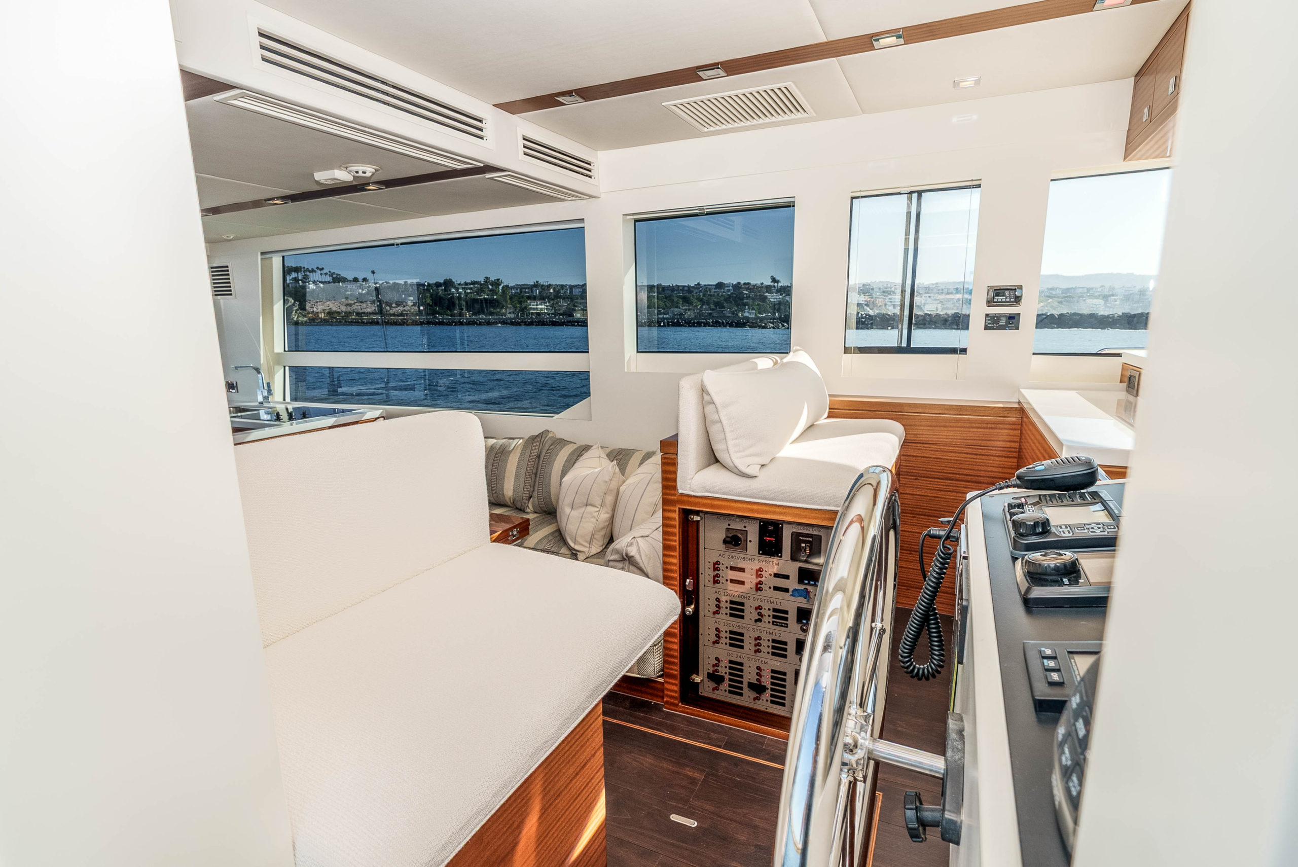 - AC/DC main control panel located near lower helm