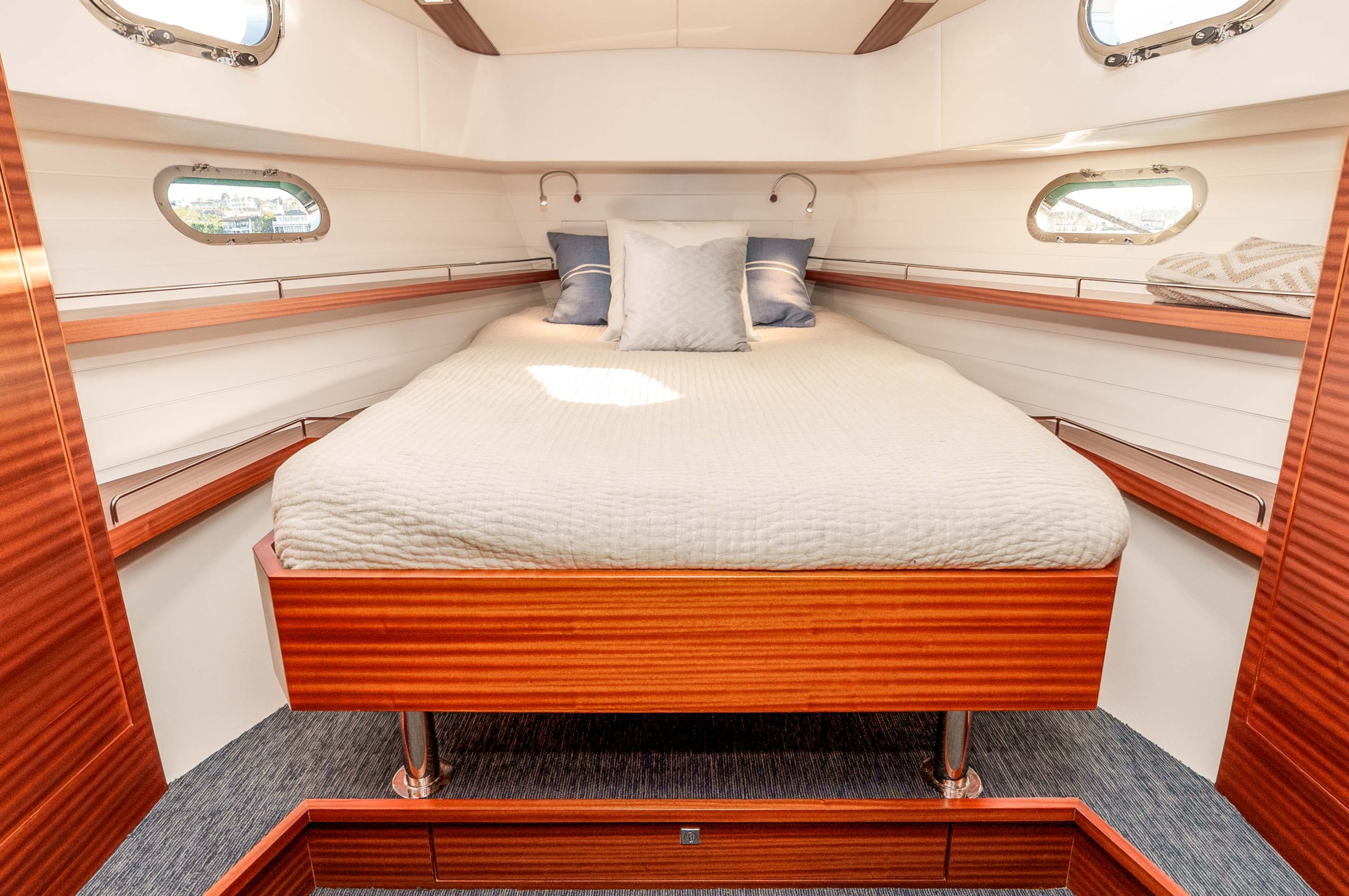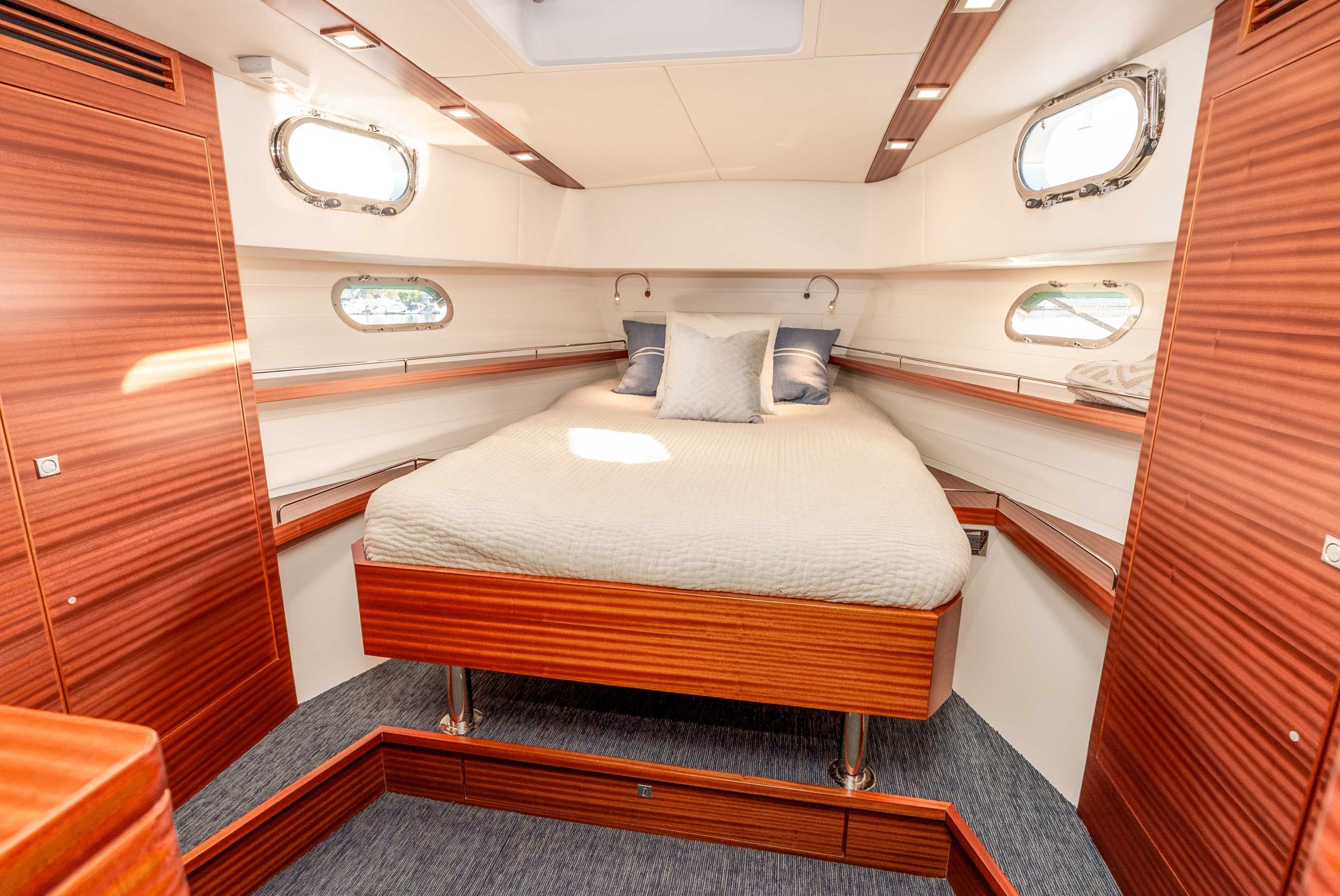- Carpeted sole with access to head ensuite or from companionway