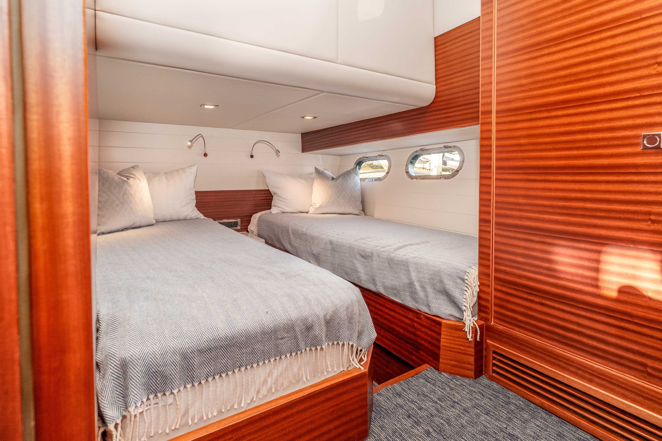- Twin side by side berths with nightstand and engineered countertop