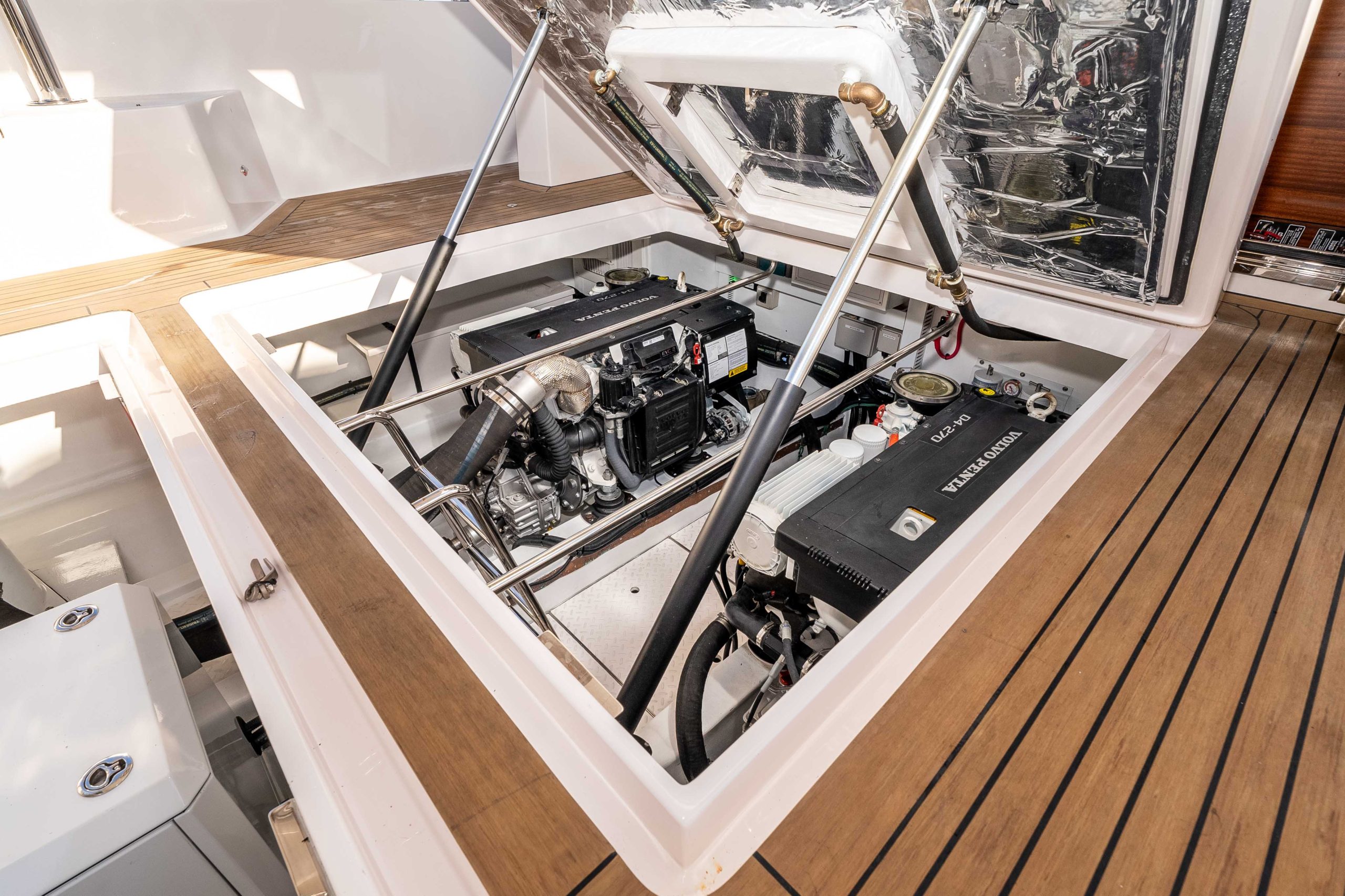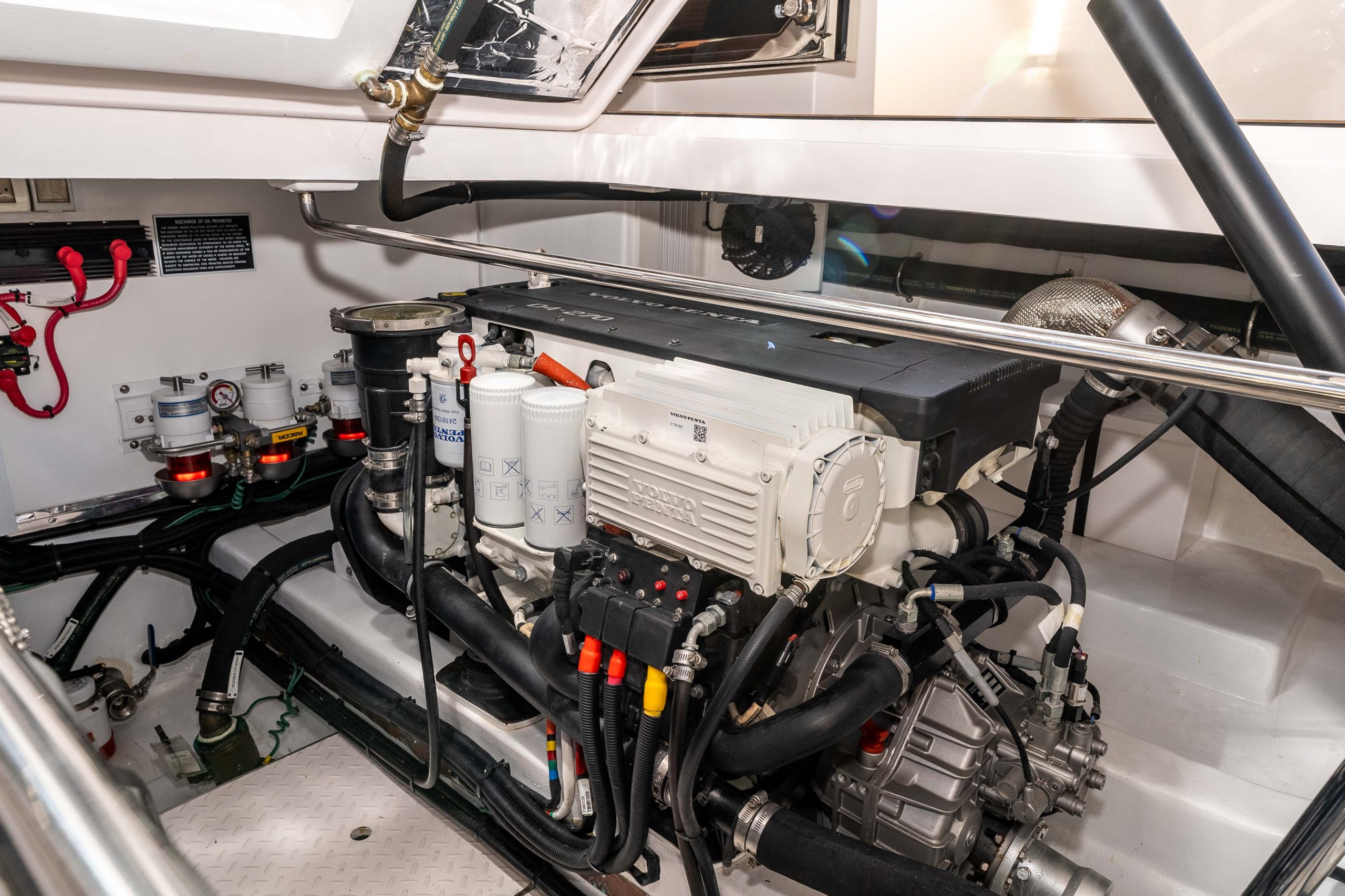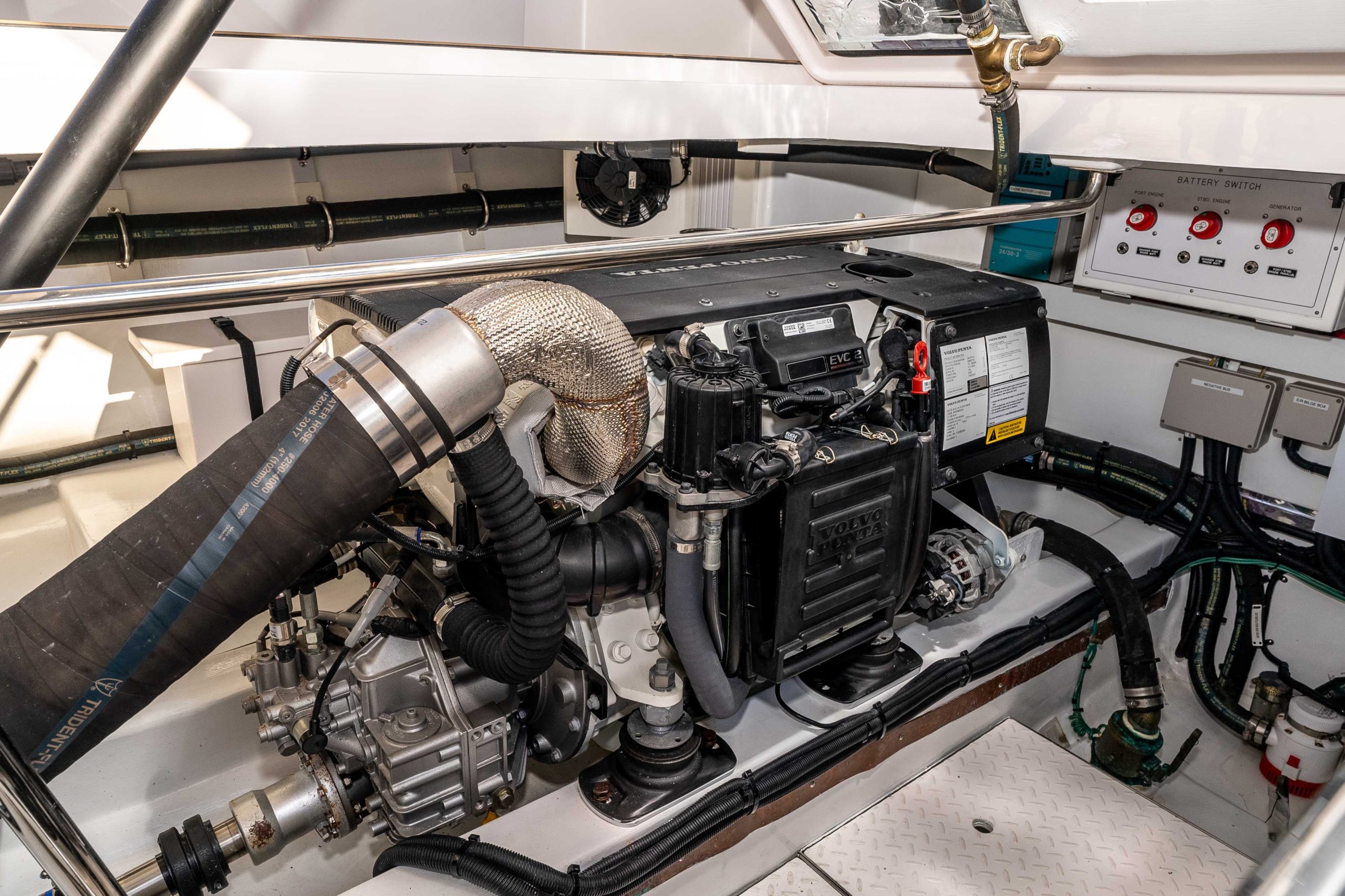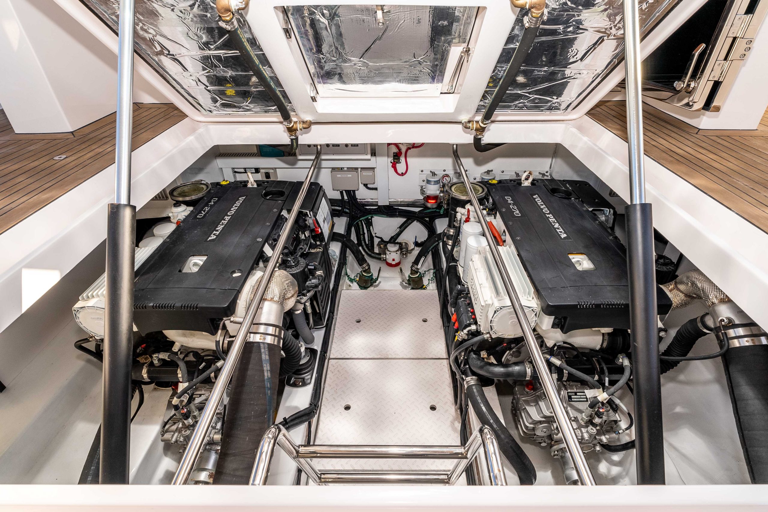 - Twin Volvo Penta D4iG 270 HP; 4 cylinder, common rail, electronic shift, Tier III emission certified. 230 hours