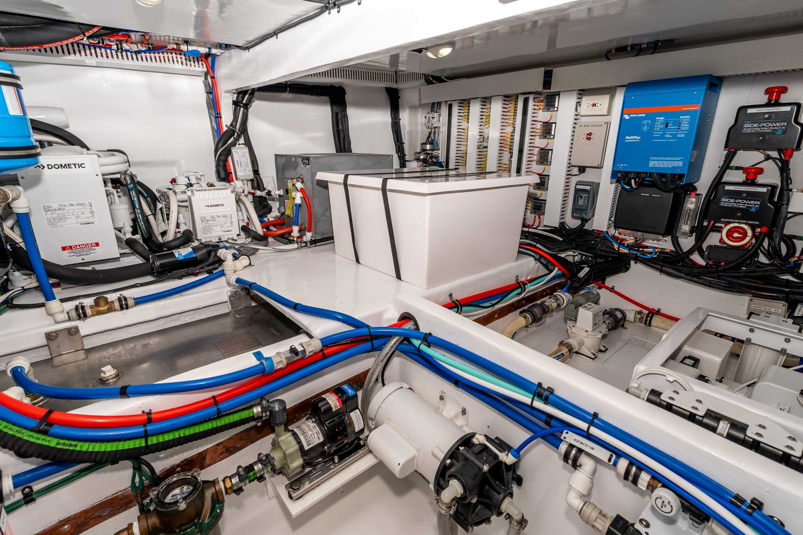 - Gloss white engine room.